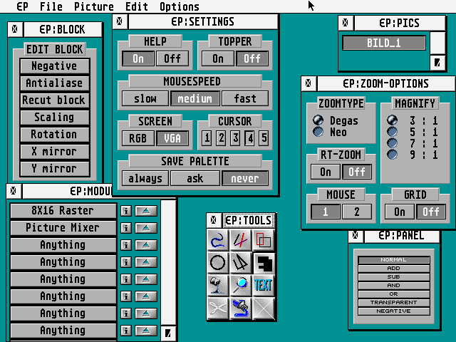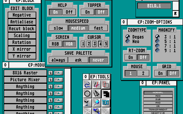 Norman Feske alias No/Escape hatte mit Escape Paint eines der beliebtesten Szene-Malprogramme für den Falcon entwickelt. Es war die erste Produktion von Escape, die später diverse STE- und Falcon-Demos, sowie die Visual Light Machine Whip! für den Falcon veröffentlichten. Escape Paint bietet modulare Effekte, eine einfache GEM-Oberfläche und zwei Zoom-Arten (Degas und Neochrome). Dieses Archiv enthält sowohl das kompilierte Programm, als auch den Quelltext, den wir mit freundlicher Genehmigung von Norman hier veröffentlichen.