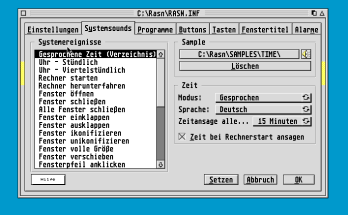 Ein ehemals kommerzielles Utility, das Systemereignisse mit frei wählbaren Samples belegt. Installiert wird Rational Sounds via GEMSetup, ein Multitaskingbetriebssystem wird empfohlen.